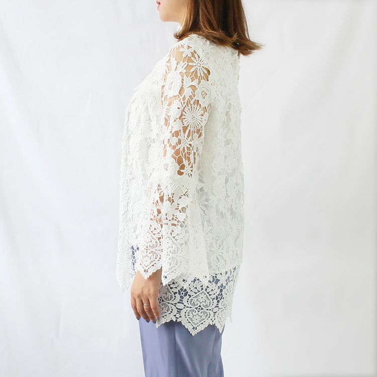 スタンドカラー総レースフレアスリーブトップス/2214528