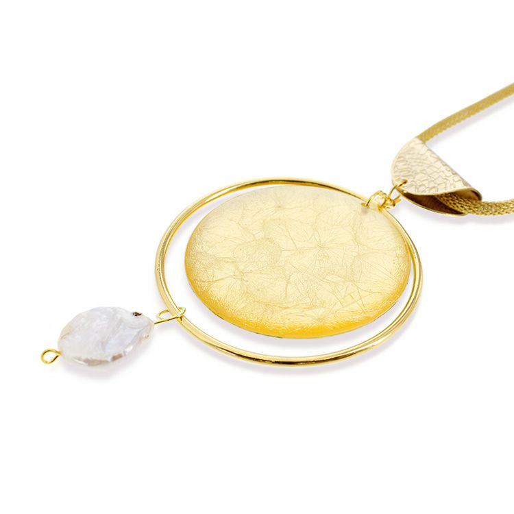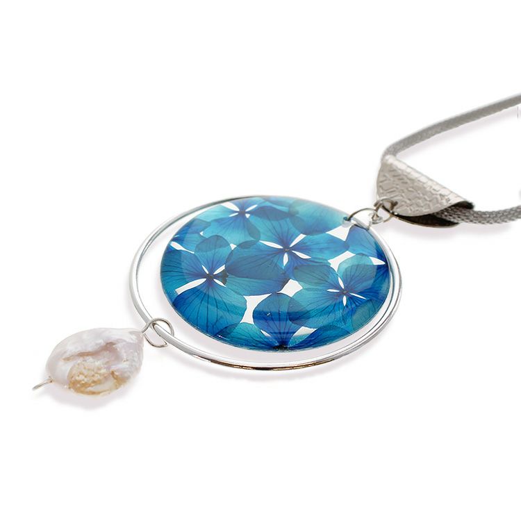 アジサイ押し花x淡水パールラウンドロングネックレス/1020134