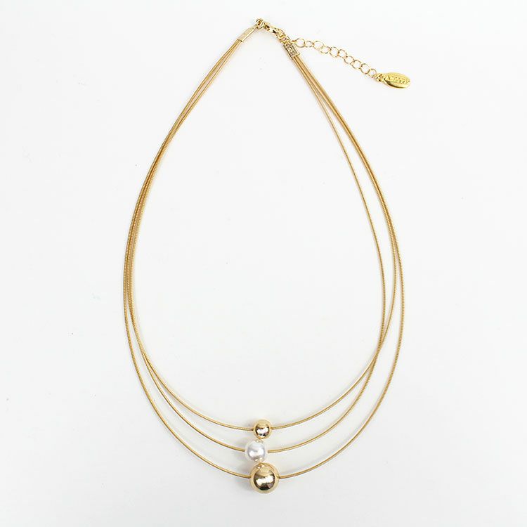 メタルボールとパールがアクセントになった3連ショートネックレス。首元に馴染みやすいデザインがデイリー使いしやすいデザインです。カジュアルからオケージョンシーンまで幅広くご利用いただけます。