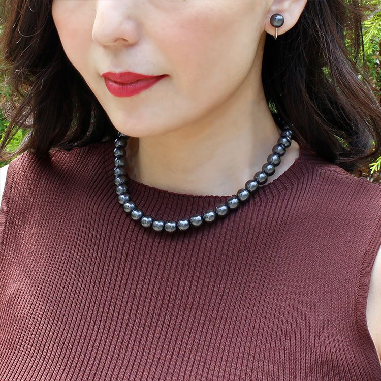 日本製コットンパールネックレス・イヤリングセット/1210080--2