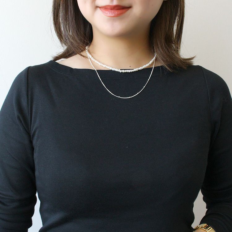 華奢なチェーンと小さな淡水パールの2連ネックレス。チェーンと淡水パールはそれぞれ使用することができるほか、他のアイテムとの組み合わせもお楽しみいただけます。