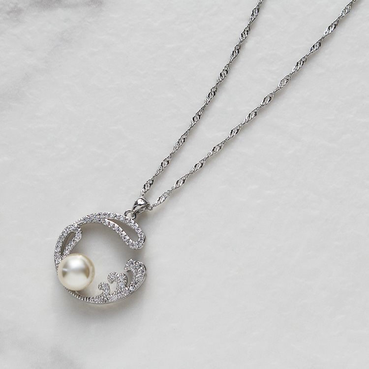 波や蔦のような柔らかい曲線にパールをあしらった上品なペンダントネックレス。繊細なきらめきのあるスクリューチェーンが、主張しすぎず首元に華やぎをプラスしてくれます。