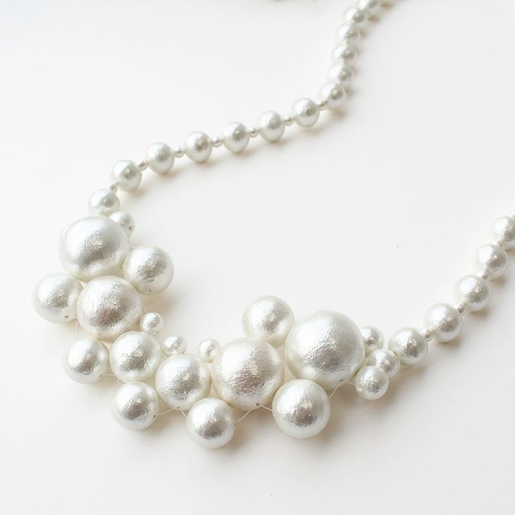 やさしげな肌触りと独特の風合いが魅力の、コットンパールのデザインネックレス。
