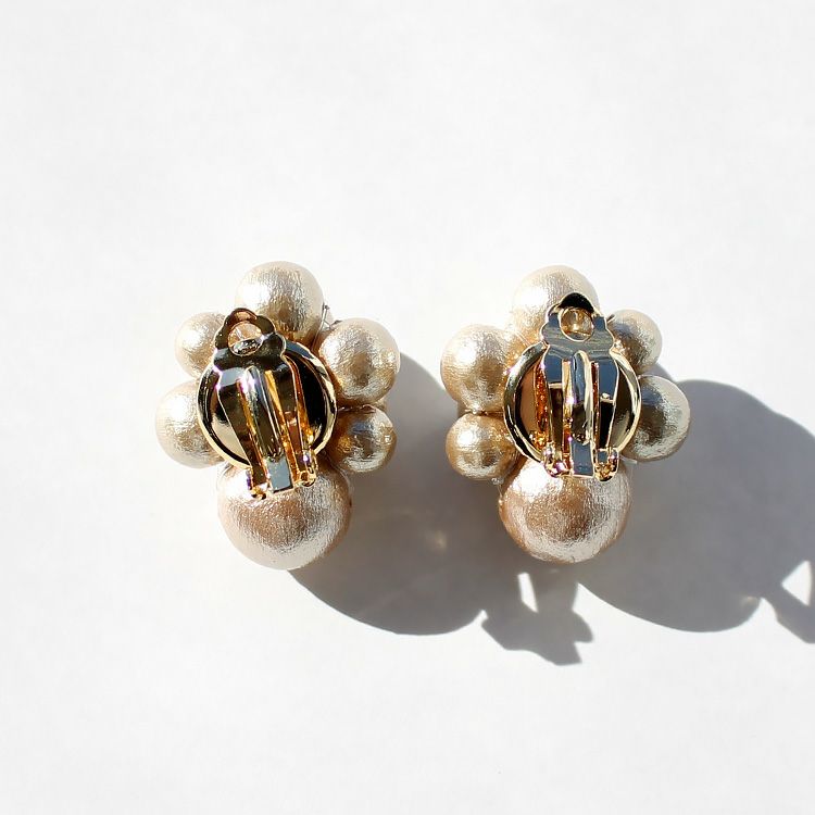 肌馴染みの良いベージュカラーのコットンパールイヤリング。