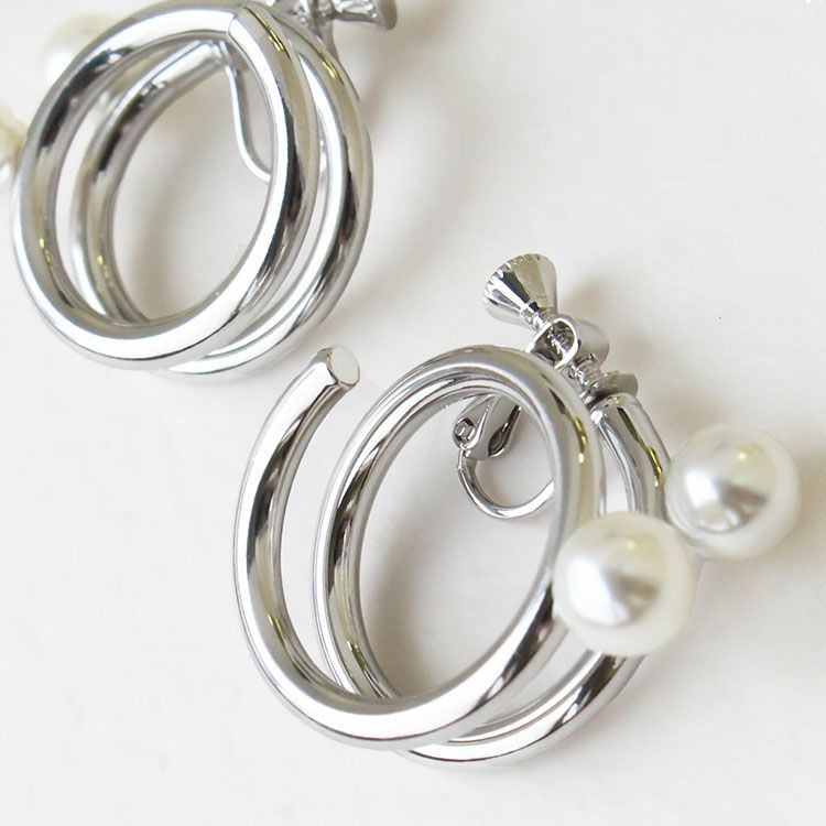 パール×メタルスパイラルデザインイヤリング/3240020【美ST 掲載】