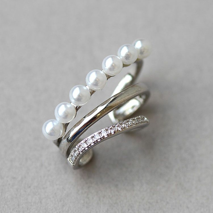 パール、キュービックジルコニアがあしらわれたデザインイヤーカフ。ピアスホールがない方でも、ピアスのように見え、簡単にオシャレ映えします。普段使いからオケージョンシーンまで、幅広くご利用いただけます。