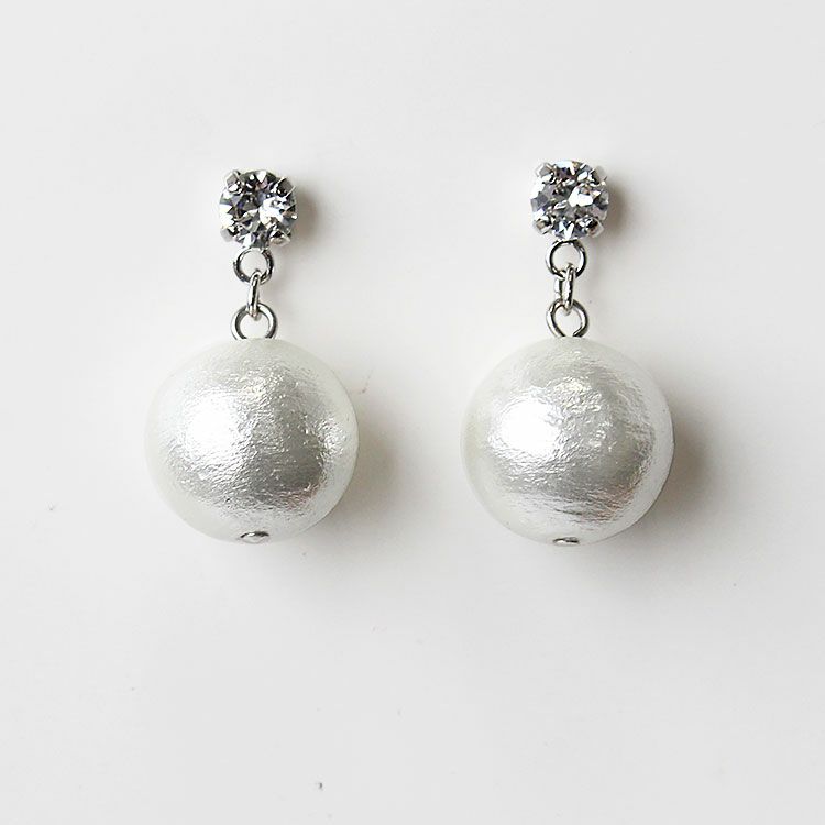 日本製コットンパールデザインピアス