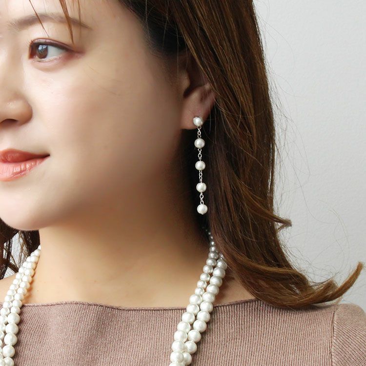 やさしげな肌触りと独特の風合いが魅力の、コットンパールのデザインロングピアス。しなやかに揺れる華やかなデザインは、パーティーからデイリーまで幅広くご使用いただけます。