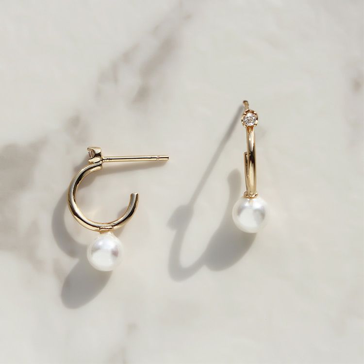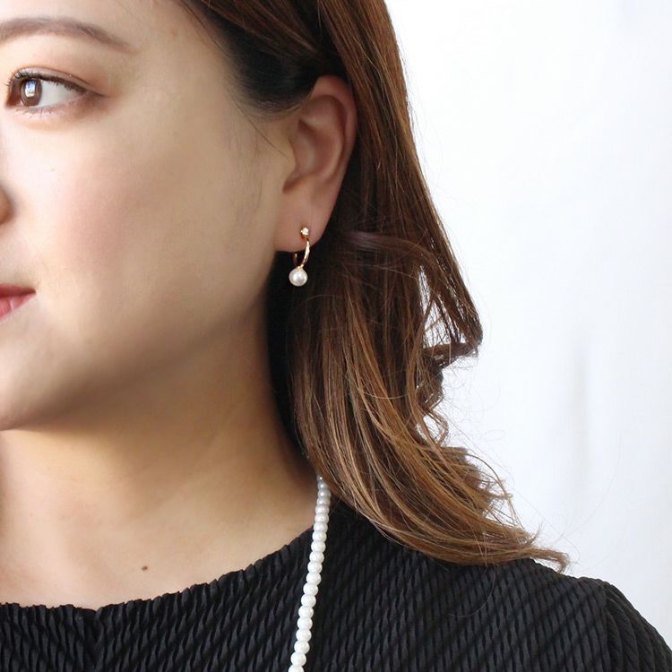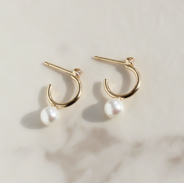 18金メッキの極細メタルの小さなフープが耳元にすっと溶け込むようなピアス。世界一の人工パールといわれるスペイン、マヨルカ島で生産されるマジョルカパールを配し、シンプルでありながらも洗練された印象。クリスタルガラスの煌めきもアクセントに。