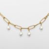 線が細く大ぶりなチェーンにマヨルカ島で作られたパールを組み合わせたゴールドカラーのチェーンブレスレット。