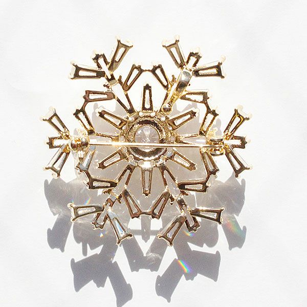 雪の結晶の中心に大きなキュービックジルコニアが煌めくブローチ。