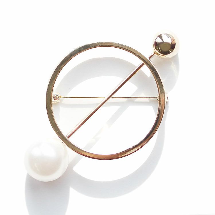 サークルモチーフに大粒のパールがアクセントになったブローチ。 遊び心あふれるデザインはパーティーやお出かけにおすすめです♪