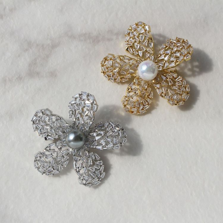 フラワーモチーフキュービックジルコニア×パールブローチ