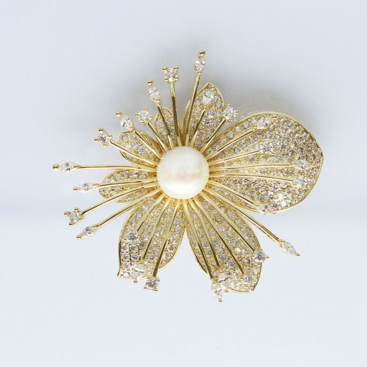 キュービックジルコニア×淡水パールフラワーブローチ