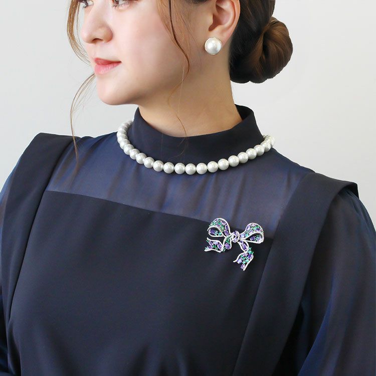 キュービックジルコニア×淡水パール リースモチーフブローチ