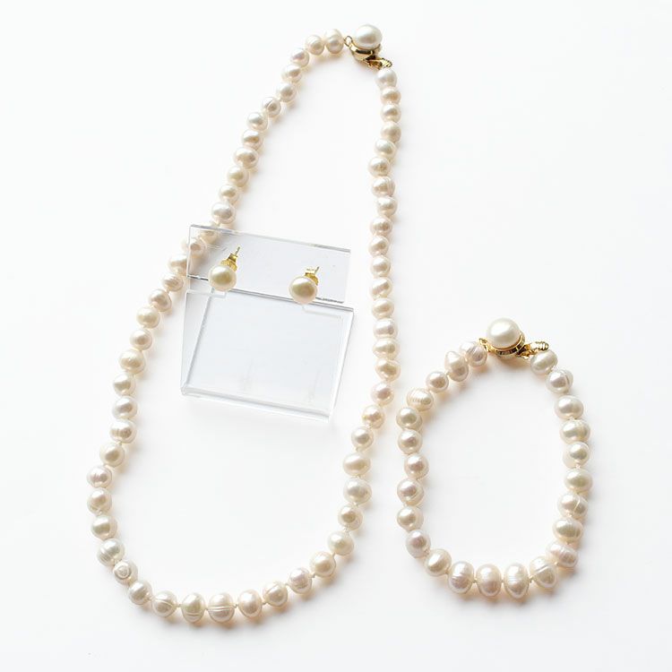 淡水パールネックレス・ブレスレット2点セット/1240297--2
