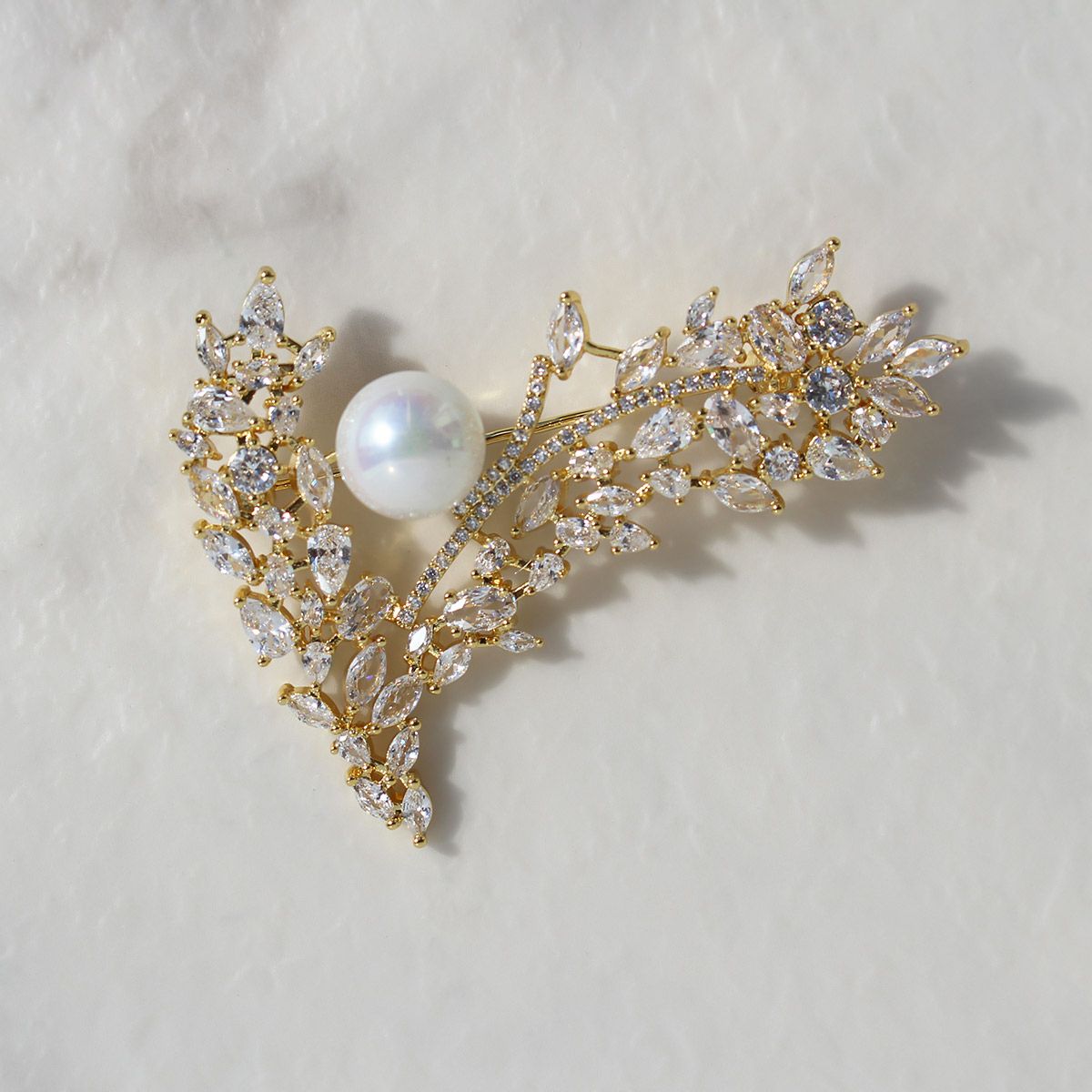 キュービックジルコニア×淡水パールボタニカルブローチ【美ST 掲載】