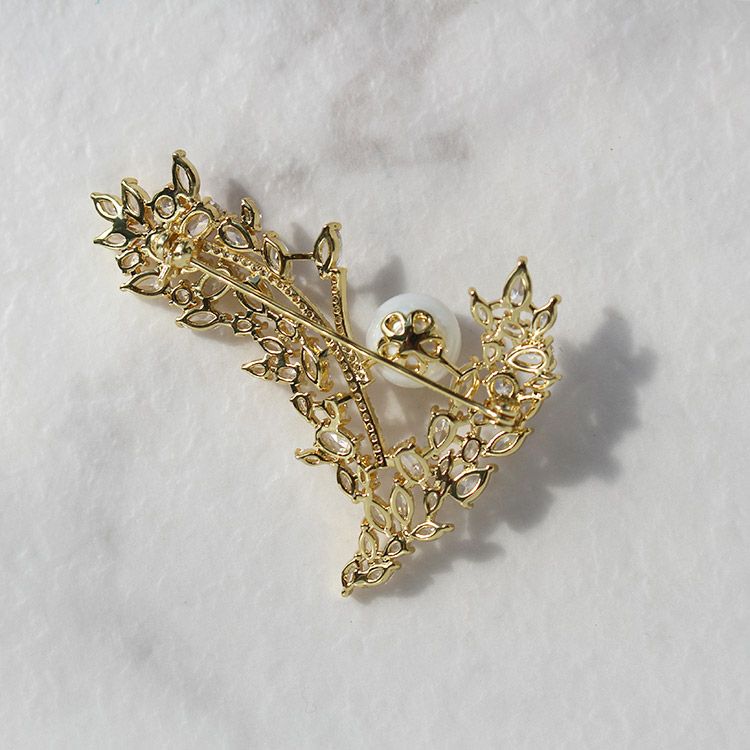 フラワーモチーフキュービックジルコニア×パールブローチ
