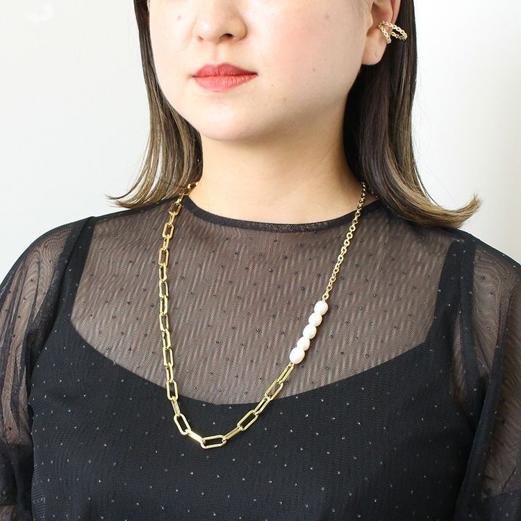 パールメタルチェーンネックレス
