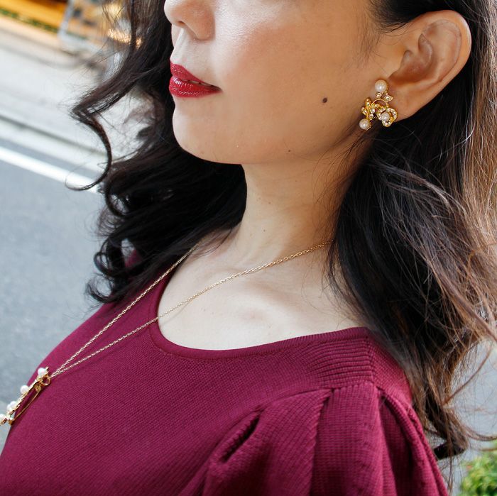 【アルファジュエリー】フラワーモチーフパールヴィンテージイヤリング/0033985G