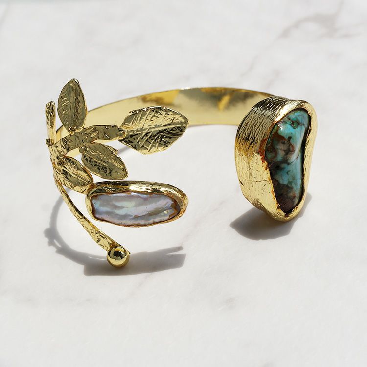 ターコイズ&淡水パールバングル・リング2点セット/4230018G-2