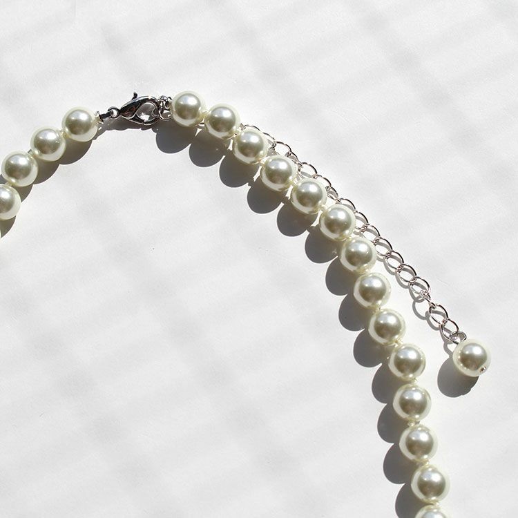 ガラスパール×キュービックジルコニアショートネックレス/1171118-