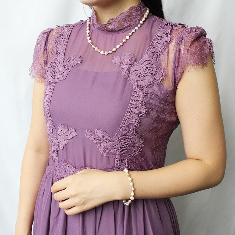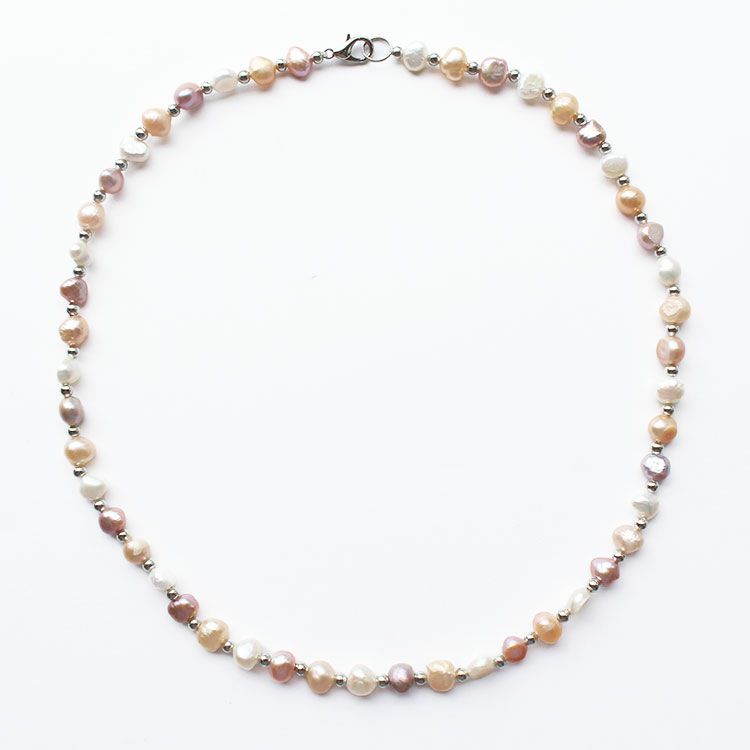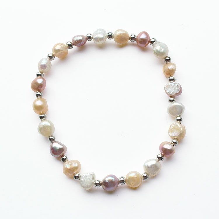 優しいライトピンク系のバロックパールにメタルビーズをあしらったおしゃれで上品な淡水パールのネックレス、ブレスレットの2点セット。淡水パールならではの照りの美しさが魅力です。花嫁がつけるブライダルアクセサリーとしてはもちろん、結婚式のお呼ばれアクセサリーや、パーティーシーン、会食、外出時、デイリーなど、幅広くご利用いただけます。