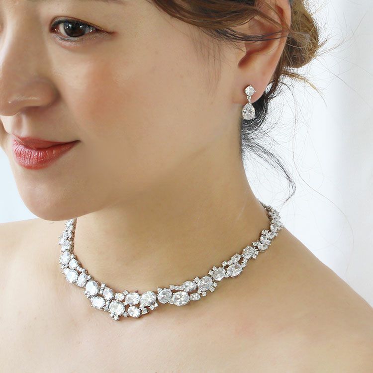キュービックジルコニアビジューネックレス・イヤリングセット