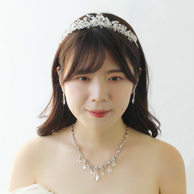 クリスタルガラスのお花がキュートなブライダルティアラは、かわいくて優しい印象に。ナチュラルやシンプルなドレスにも似合います。柄の部分は若干伸び縮みするので多少の幅調整は可能です。