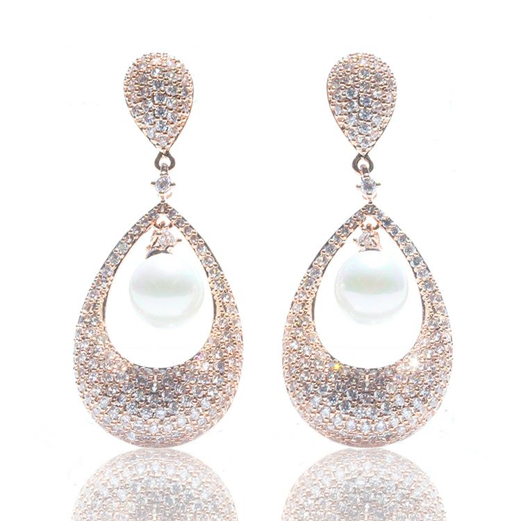 キュービックジルコニア×パールドロップ型ピアス/3180014