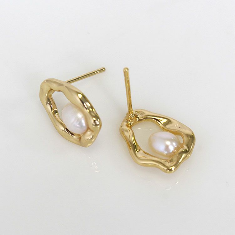 淡水パールメタルフレームデザインピアス
