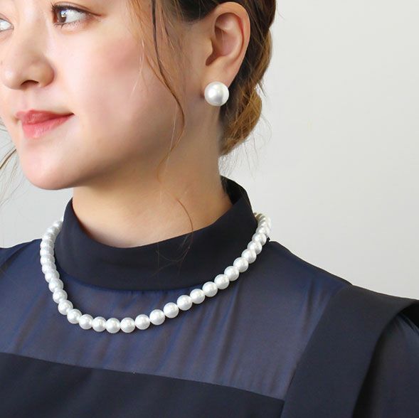 大粒の16mmパールイヤリング。華やかな印象になるので、パーティーや同窓会・謝恩会などの会合、女子会やランチなど日常のお出かけなど、華やかなファッションを楽しめるシーンにおすすめです。カジュアルな普段着に合わせても洒落感が出る大ぶりパールはサッと一つ付けるだけで華やぐので、忙しい大人の女性にこそおすすめです。
