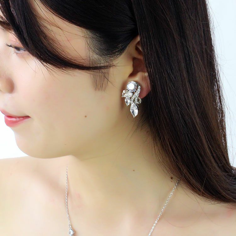 華やかなデザインのクリスタルガラスイヤリング。花嫁の耳元を飾るブライダルアクセサリーとして、パーティーシーンや会食、外出時にもご利用いただけます。