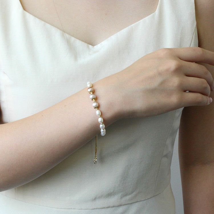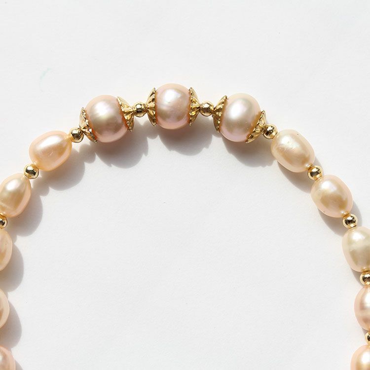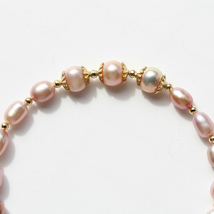 華やかな淡水パールブレスレット。やわらかくなめらかな輝きを放ち、一粒一粒表情の異なる淡水パールは、唯一無二の存在。自然の美しさが凝縮された輝きをお楽しみいただけます。カジュアルからフォーマルまでさまざまなシーンでご利用いただけます。