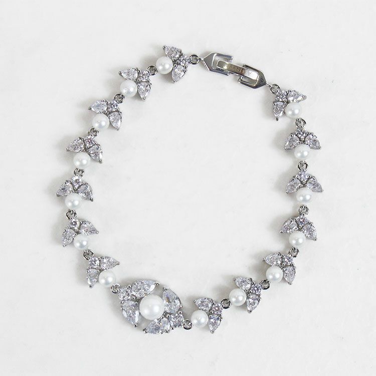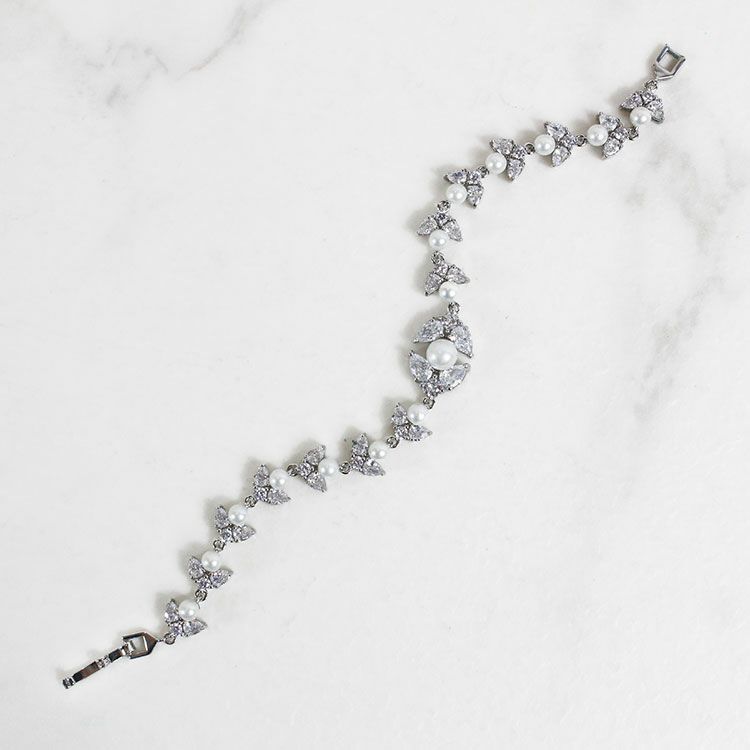 キュービックジルコニアの煌めきにパールを組み合わせた、品の良いブレスレット。