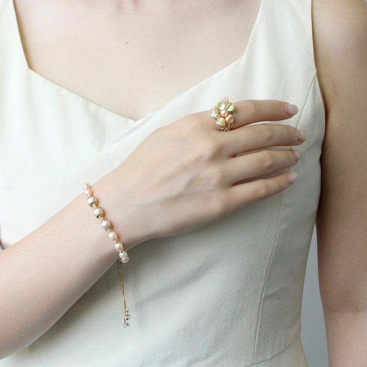 淡水パールでお花を模ったフラワーモチーフパールリング。淡水パールならではのやわらかい光沢感とやさしい色合いが特徴です。パーティーからデイリーまで幅広くご利用いただけます。