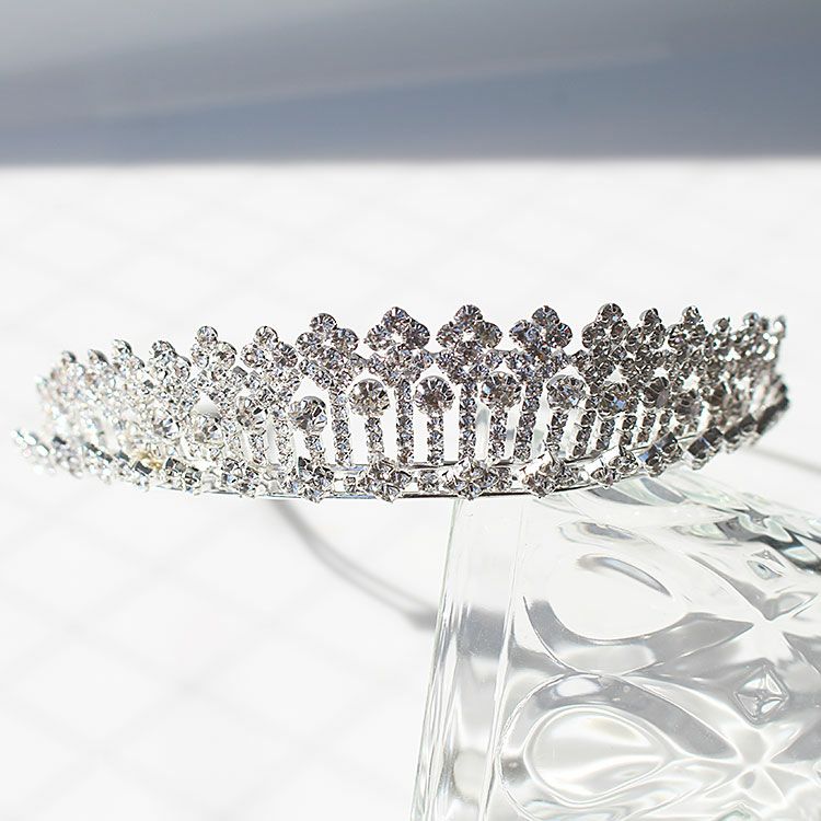 クリスタルガラスがふんだんにあしらわれた王道のプリンセスティアラ。まるでお姫様になったようなプリンセス気分が味わえます。ゴージャスなドレスにも、シンプルなドレスにもピッタリ。たちまち華やかに見せてくれます。柄の部分は若干伸び縮みする素材のため多少の幅調整は可能です。