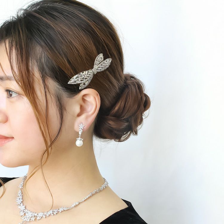 キュービックジルコニアリボンモチーフヘアクリップ