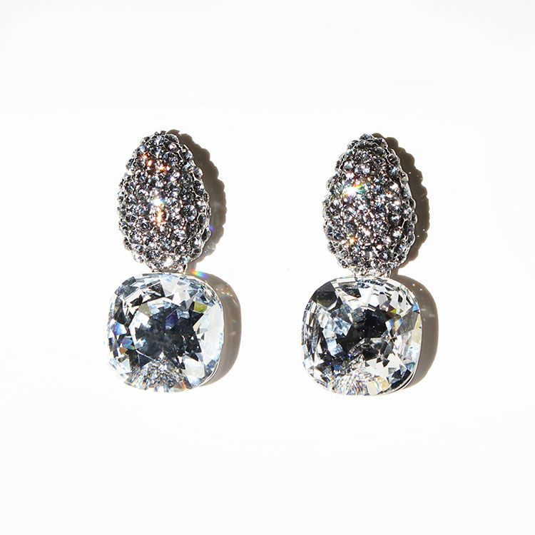 ガラスパール×キュービックジルコニアデザインイヤリング