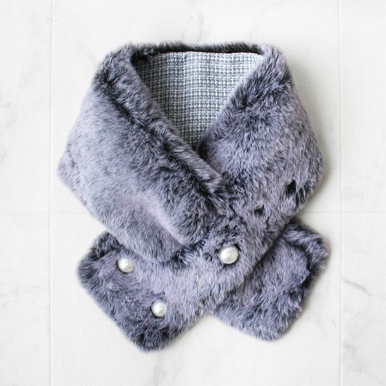 ボリュームのあるファーライク素材なので、首元を暖かく、華やかに彩ります。毛足が長くスリット穴が目立ちにくいので、穴に通さずブローチを留めてアレンジすることも可能。コーディネートやお好みにより、長めに着けたいときにも便利なアレンジです。針跡も目立ちにくいので、ぜひお試しください。