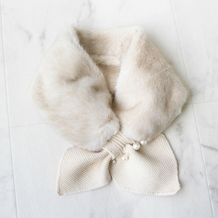 ふわふわのエコファーティペット。大小のパールがレディなムードをプラス。