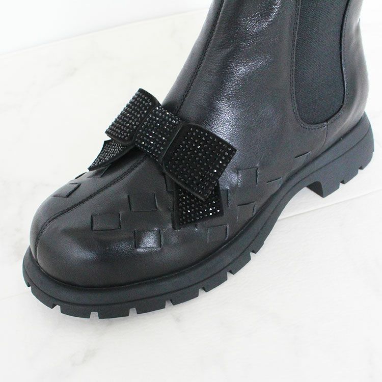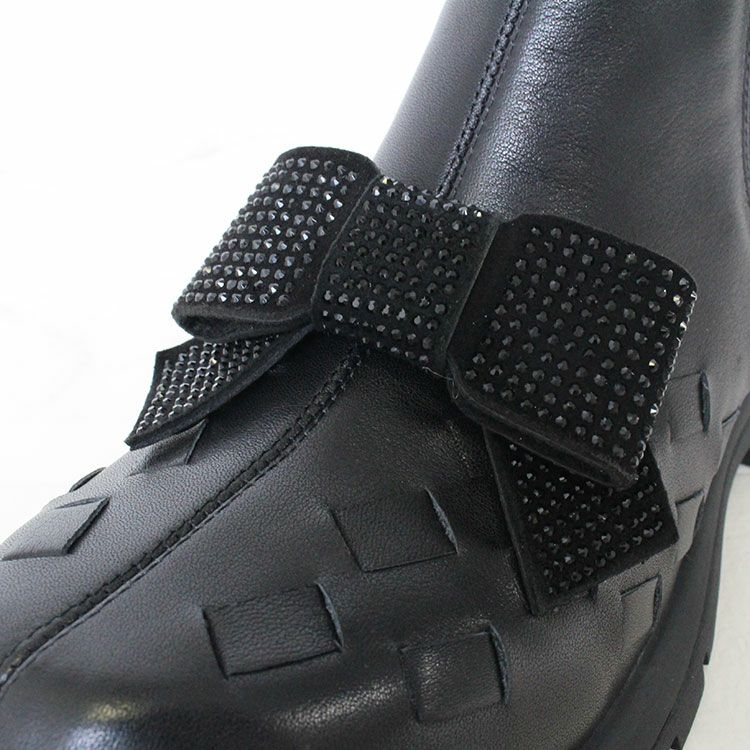 煌めく大きなリボンが印象的なデザインブーツ。サイドゴアなので伸縮性がありスルッとした履きやすさも抜群です。底材には軽くて足への負担が少なく、疲れにくいのが特徴のEVA合成底を使用。優れたクッション性で歩行時の衝撃をしっかり吸収し、長時間の歩行でも快適さを保てます。 また水に強く汚れがつきにくいのでお手入れも簡単。オシャレなデザインに実用性も兼ね備えています。