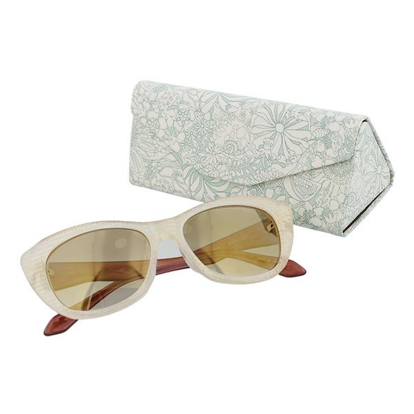 ケースはリバティジャパン社とのオフィシャルコラボにより実現した、リバティアートファブリックを使用した折り畳みケース。しっかりとサングラスを保護しつつ、サングラス着用時にはコンパクトにしまえて便利です。