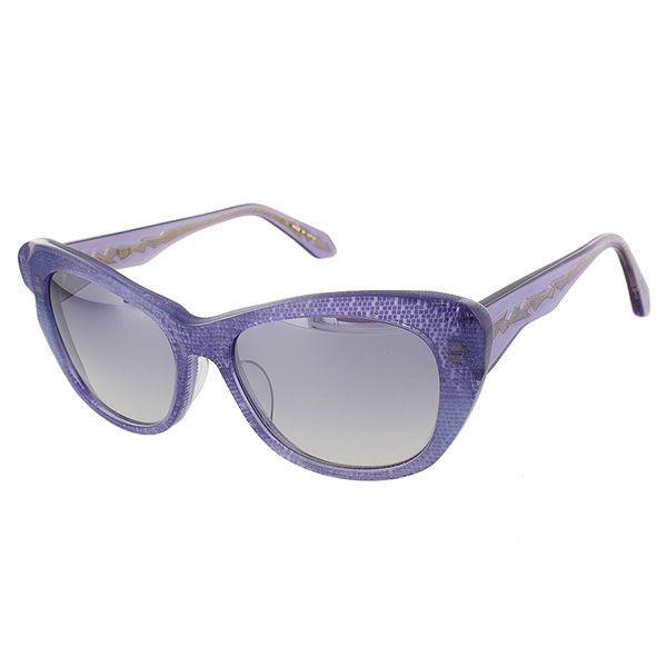 めがねの街、福井県鯖江でデザイン・制作したサングラス。女性らしいフォルムのフレームには微細なラメ感があり、さりげなくも華やか。注目すべきはテンプルの芯の形。透けて見える特徴的なデザインは横顔のアクセントになり、細部までこだわる大人のおしゃれを感じさせます。