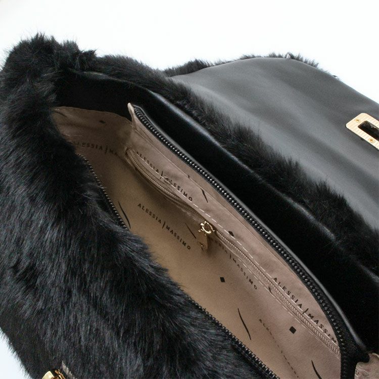 ショルダーベルト付きフラッフィーハンドバッグ