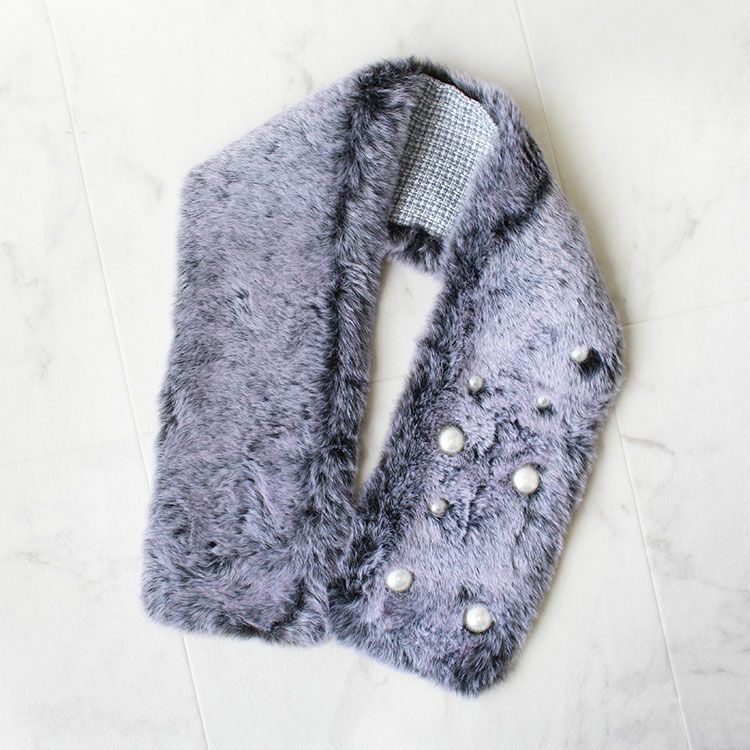 ふわふわのエコファーティペット。大小のパールがレディなムードをプラス。