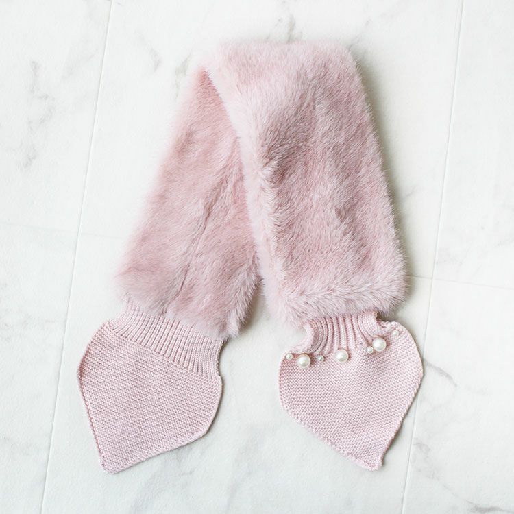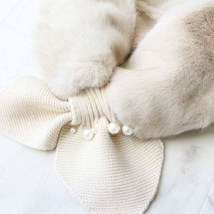 ふわふわのエコファーティペット。大小のパールがレディなムードをプラス。
