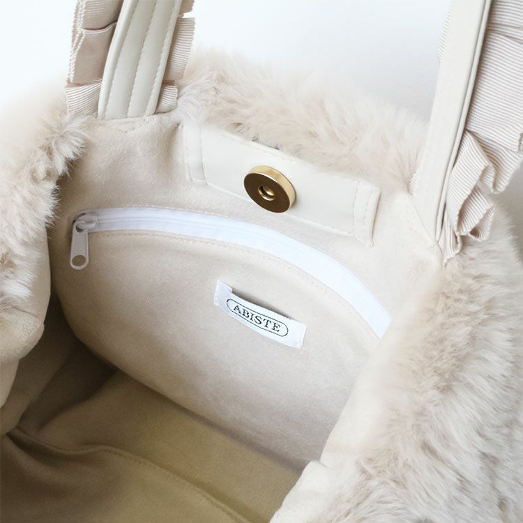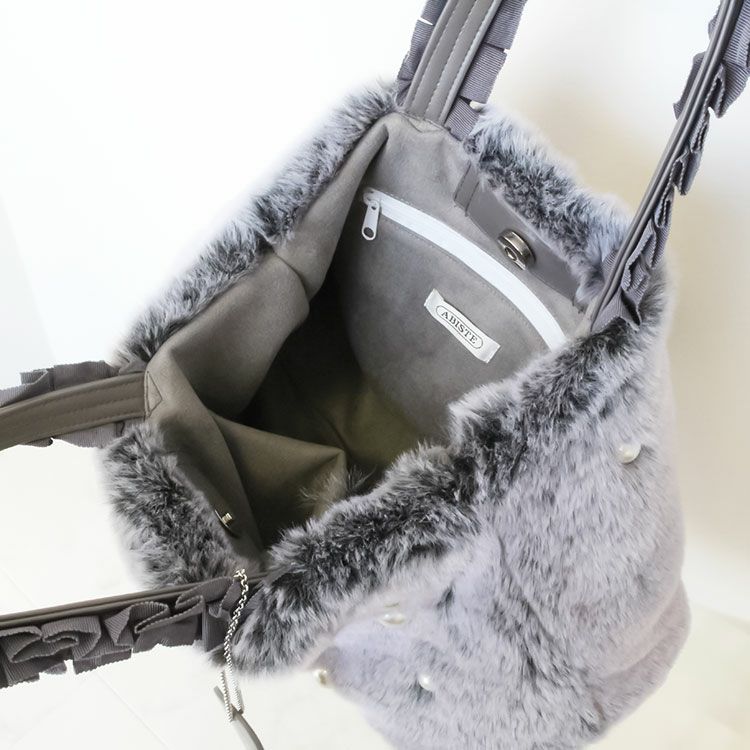 大人可愛いふわふわのエコファーバッグ。大小のパールが、カジュアルになりがちなファーバッグにレディなムードをプラス。全体がファブリックの柔らかい質感で入れるものによって多少形が変わるので、たっぷり収納できます。外したマフラーや500mlペットボトルやタンブラー、長財布などもすっぽり入ります。開閉部分はマグネットになっているので、中身の取り出しもスムーズ。