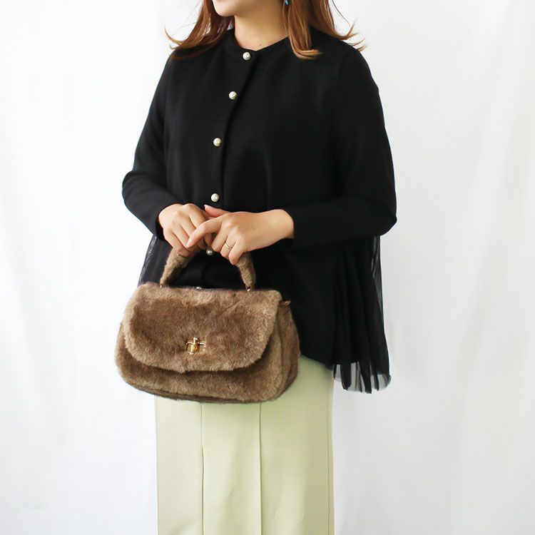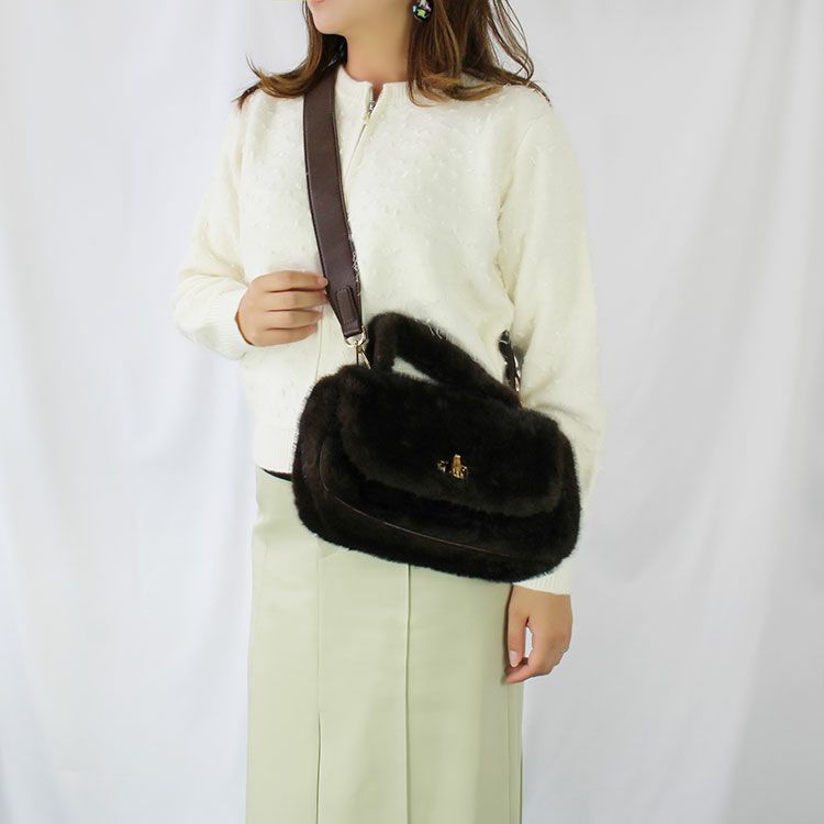 ショルダーベルト付きフラッフィーハンドバッグ