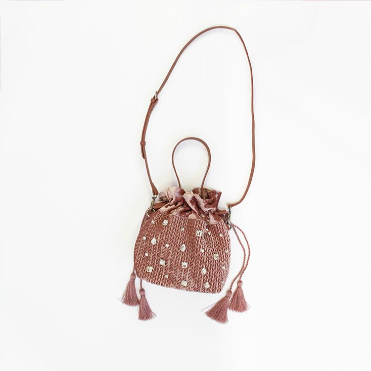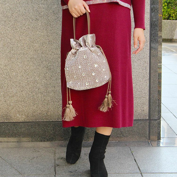 巾着型ベロアビジュー2wayバッグ